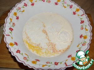 Молоко соедините со сливками, добавьте муку, чеснок (чесночница), соль и перец (я еще немного любимых специй добавила)