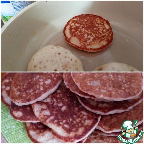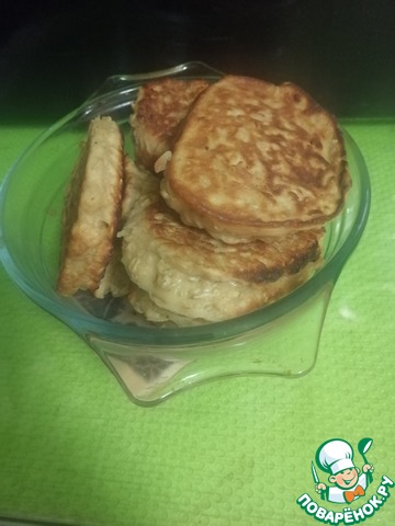 Единственное,я добавила вместо пшеничной муки,овсяную(уменьшила калорийность),плюс столовую ложку масла и уже жарила без него.буду пробовать готовить еще с наполнителями(яблоко или банан,например)