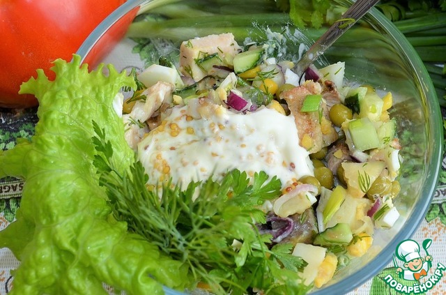 Рецепт «Салат с копченой курицей "Нежный"»: