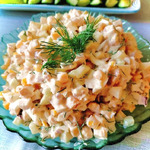 Не вижу никаких преград, иметь в меню такой салат! Вкусный, нежный, легкий очень! Сытный тоже, между прочим! На здоровье угощайтесь! И довольны оставайтесь!