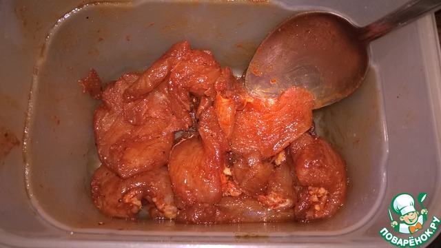 Если готовим блюдо с курицей, можно ее перед началом приготовления, нарезав небольшими кусочками, замариновать в соевом соусе и ваших любимых специях. Или просто потом порезать кусочками без маринования. Если блюдо будет постное, пропускаем этот шаг. -