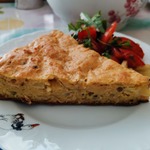 Пирог небольшого размера, так что в тёплом виде улетит быстро, сразу по 2 кусочка на человека.