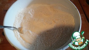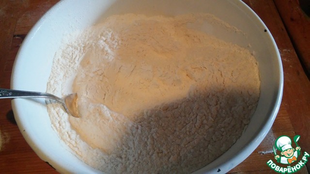 Смешиваем муку, соль, сахар и разрыхлитель.