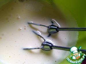 Понемногу добавляя масло, взбить массу в легкую эмульсию. -