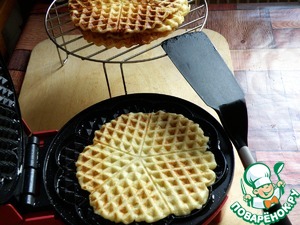 Готовые вафли складывать на решетку, чтобы не теряли хрусткости. -