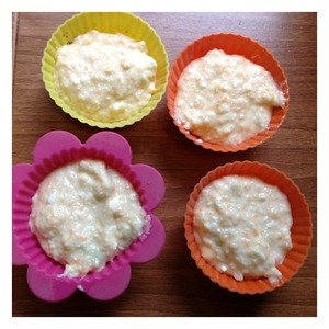 В силиконовые формочки выложить творожную массу и отправить в СВЧ на 5 минут. Моя микроволновка мощностью 800 ватт. Готовые сырники выложить на тарелочку и подавать с любимыми вашими фруктами или ягодами. Можно полить вареньем или фруктовым сиропом, а можно тертым шоколадом.