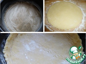 Разъемную форму размером 20см застелить пекарской бумагой, смазать дно и стенки маслом. Достать тесто из холодильника, разделить на две неравные части. Большую часть теста раскатать в круг, чуть большего размера, чем форма или поместить тесто в форму и руками распределить, сформировав небольшие бортики.
