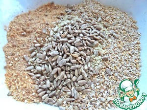 Высыпать гречневую крошку в миску пополам с отрубями.