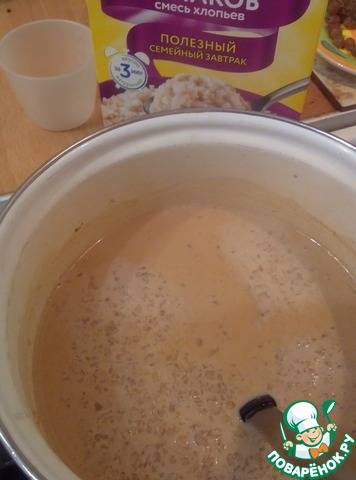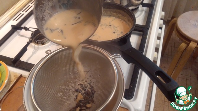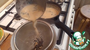 Процеживаем смесь в ту кастрюлю, где будет готовиться собственно каша.