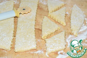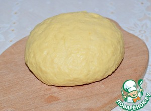 На присыпанной мукой рабочей поверхности раскатать тесто в пласт толщиной 1-1,5 см.