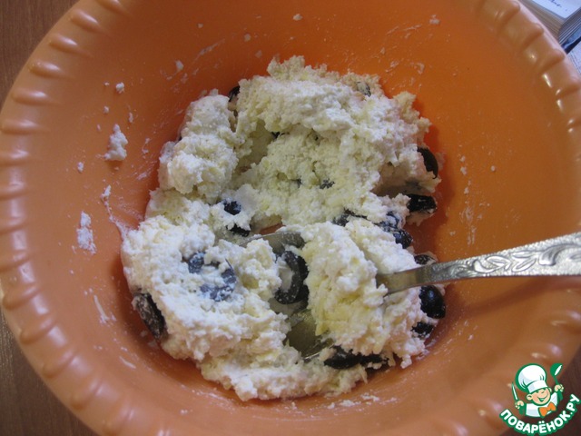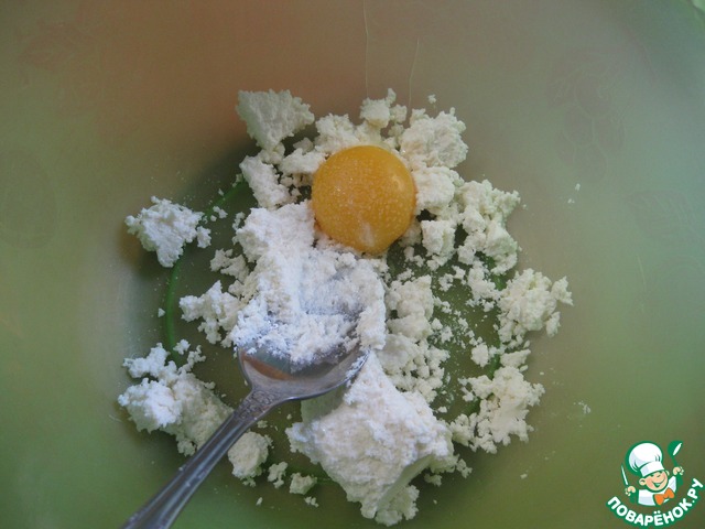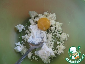 Подготовим основу для наших корзиночек, - смешать творог, желток, соль