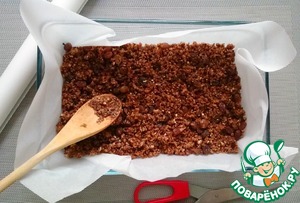 Накрыть еще слоем бумаги, хорошо прижать и отправить в холодильник для застывания, после чего нарезать на ломтики - получатся этакие энергетические батончики.