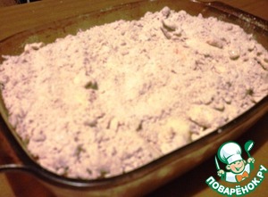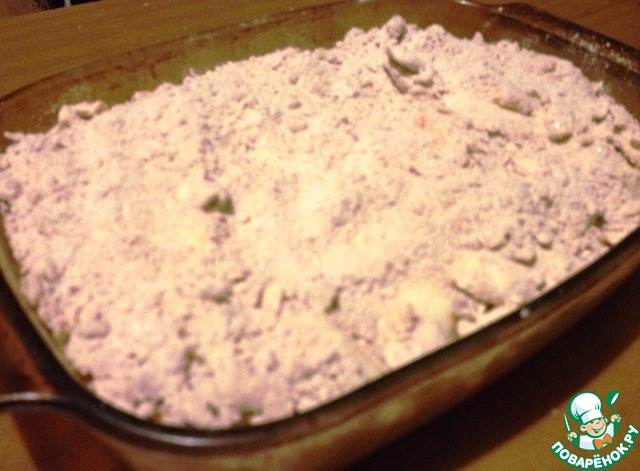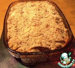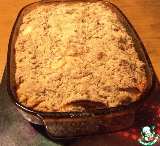 Посыпать штрейзелем яблоки. Поставить пирог в разогретую до 190С духовку.