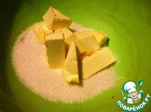 Для штрейзеля смешать сахар, муку, корицу. Жобавить сливочное масло и перетереть в крошку.