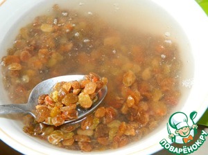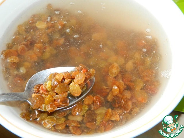 Сначала необходимо замочить изюм в горячей воде.