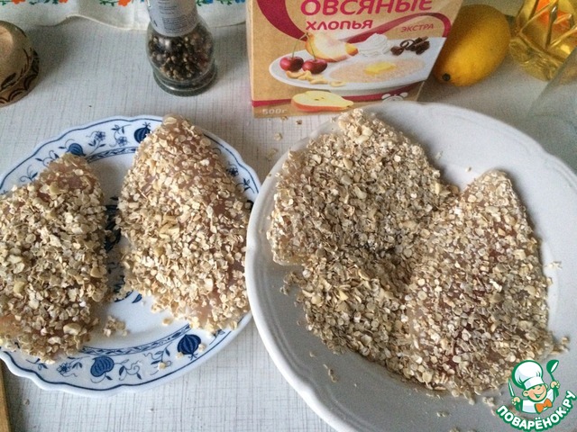 Ингредиенты для «Рыба в овсяных хлопьях»: