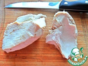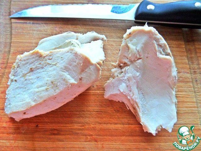 • Для начинки я взяла куриную грудку от запечённой в духовке курочки.
