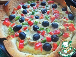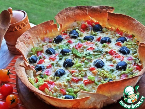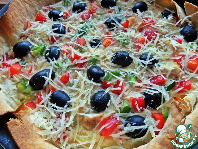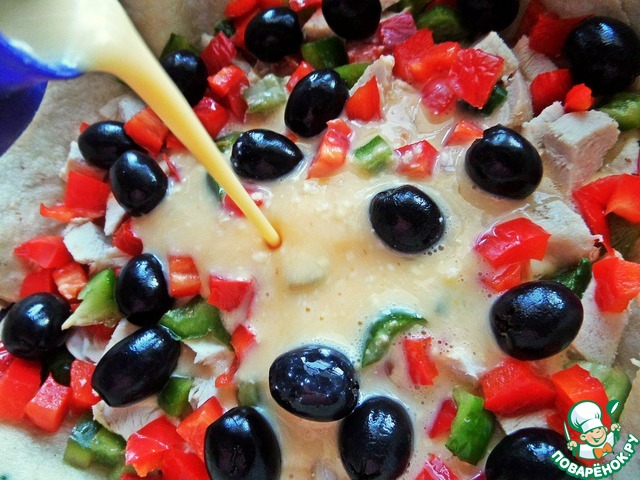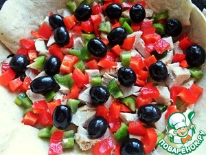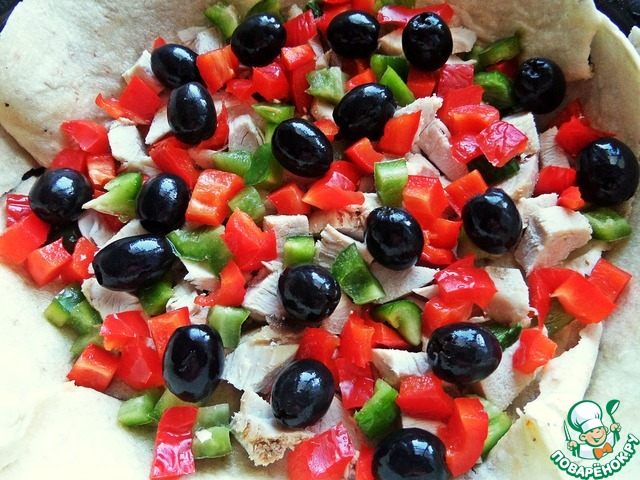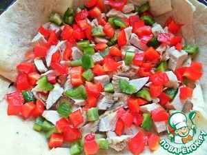 • Насыпать на дно лавашной тарелки курицу и перец.