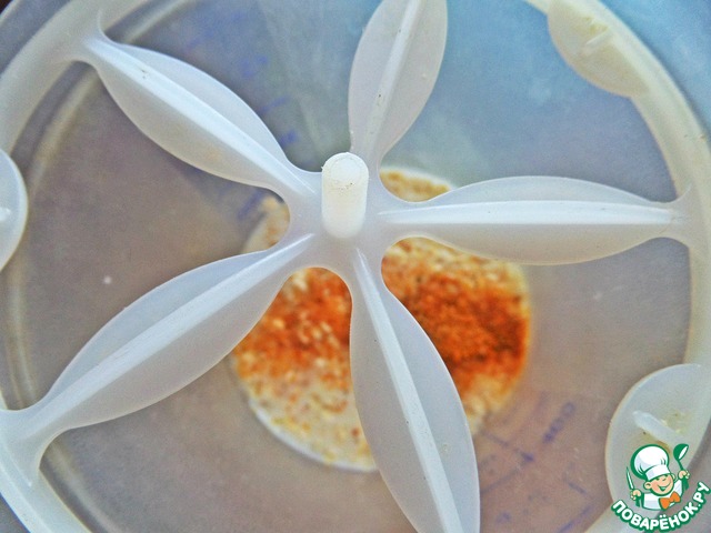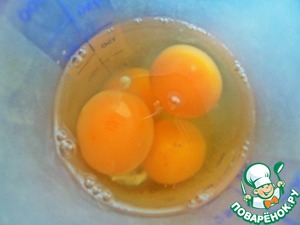 • Омлетную массу я буду взбивать в шейкере-удобно. Вбить 4 яйца.