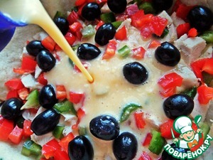 • Между ними-маслины без косточек. Можно заменить маринованным огурчиком.