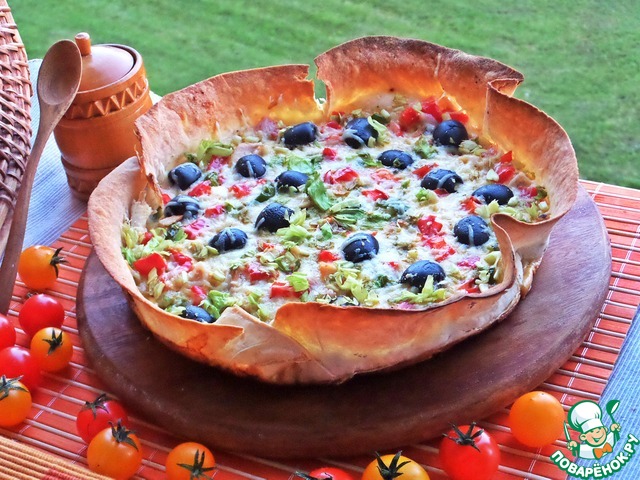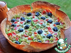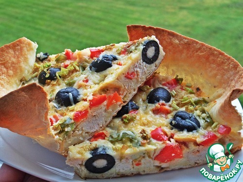 Рецепт «Омлет с курицей и овощами в лаваше»: