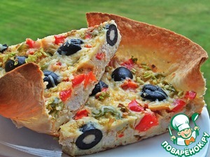 • Как видно, омлет-пирог отлично держит форму. Если что, на работу берём.