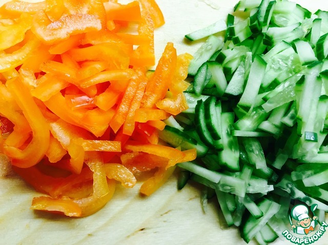 Маринуем их в смеси соевого соуса и уксуса минут 5 -