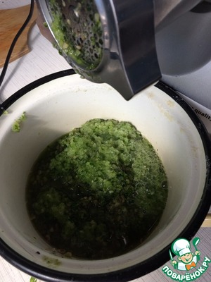 Приготовить соус: пропустить через мясорубку и смешать оставшиеся грибы, зелень петрушки, 1 луковицу.