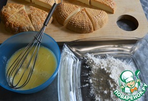 Яйцо слегка взбиваем, муку высыпаем на тарелку.