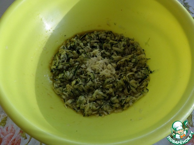 Кабачок натираем на терке.