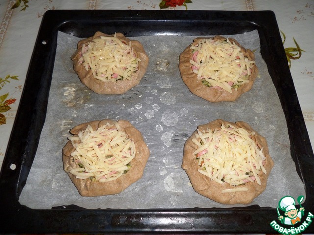 Приподнимаем и защипываем края лепешек, оставляя верх открытым. Посыпаем сыром.