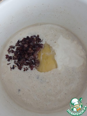 • В готовую опару (должна получиться консистенция жидкого теста)вводим яйцо, сметану и лук.