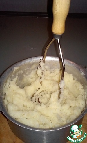 Толкушкой для приготовления пюре, тщательно разминаем картофель.