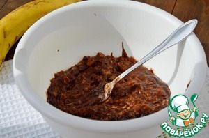В бананово-шоколадную смесь добавить хлопья с орехами, перемешать. Оставить на 10 минут.