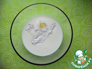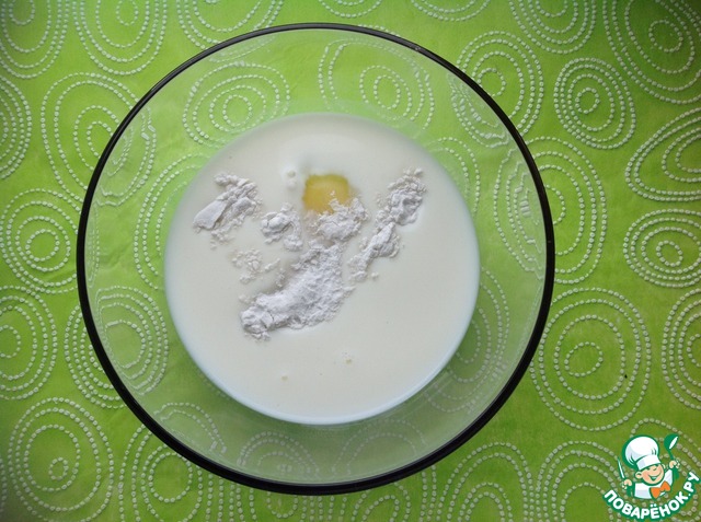 В миску добавить 150 мл молока, 20 грамм сахара, 1 яйцо и крахмал. Взбить венчиком.