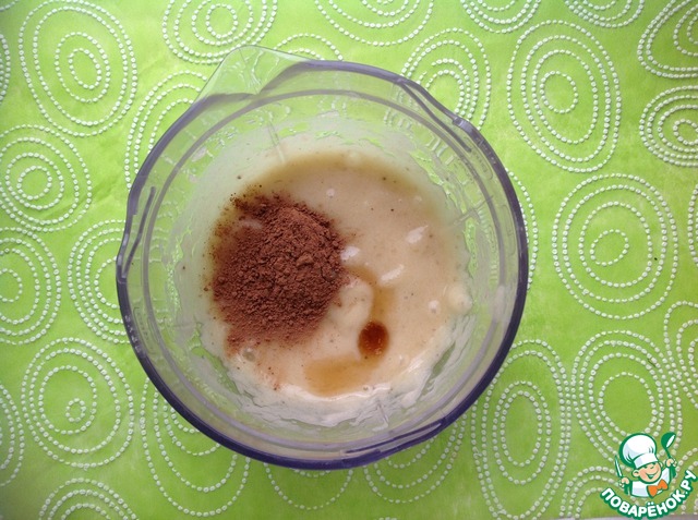 К банановому пюре добавить овсянку, какао и мёд. Перемешать.