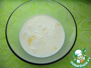 Аккуратно и постоянно помешивая влить в яично-крахмальную смесь.