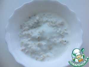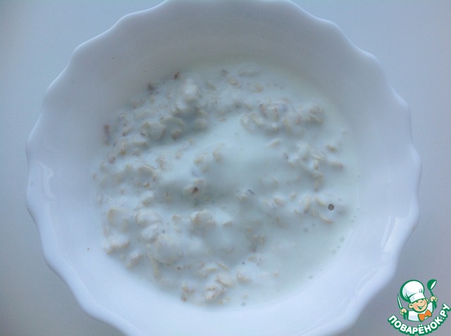 В небольшой миске перемешать овсяные хлопья и кефир. Я использую овсяные хлопья ТМ Мистраль. Дать постоять, пока готовим другие ингредиенты.