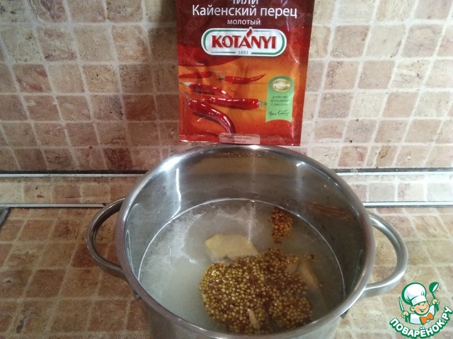 В кастрюлю влить воду, добавить сахар, готовую горчицу, зерна горчицы (я взяла уже готовую французскую). Можно добавить куркуму, а кто любит поострее - молотый чили перчик (я добавила 1 ч. л.). -