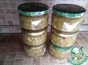 Сироп вскипятить, выложить туда подготовленную овощную смесь и тщательно размешать. Кипятить при постоянном помешивании 5 минут.