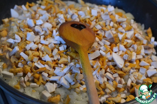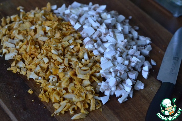 - Грибы (у меня лисички и шампиньоны) — 400 г