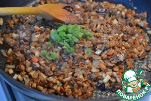 В еще горячие грибы добавить мелко нарезанный зеленый лук.