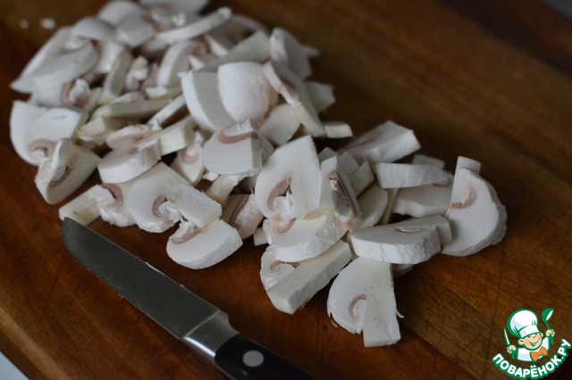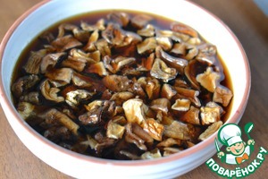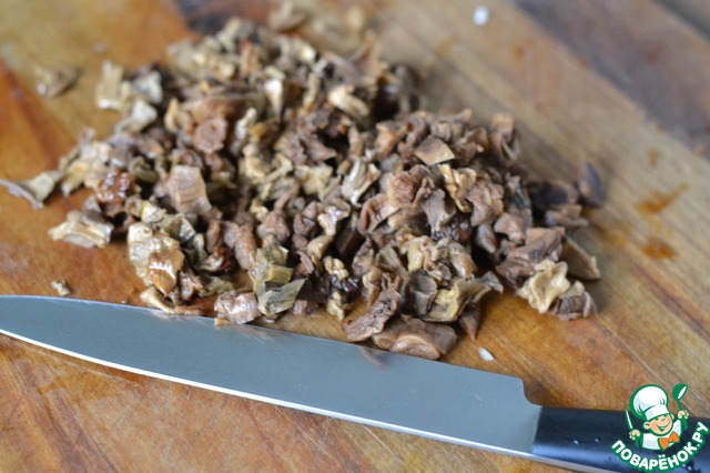 • Воду с грибов слить, даже слегка грибы отжать от воды.