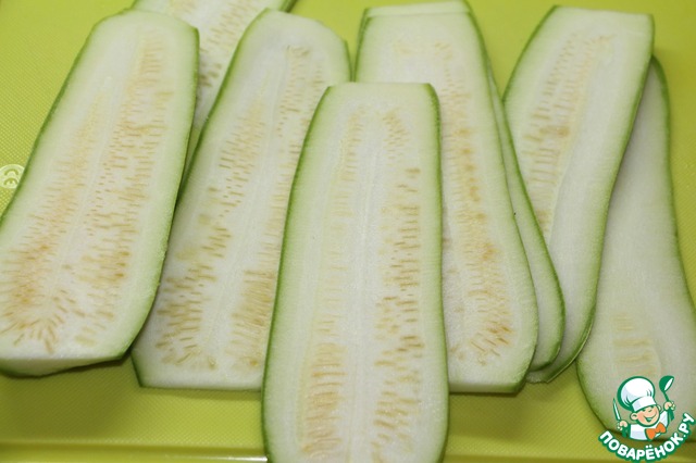 Ингредиенты для «Закуска с курицей "Кабачковые рулончики"»: