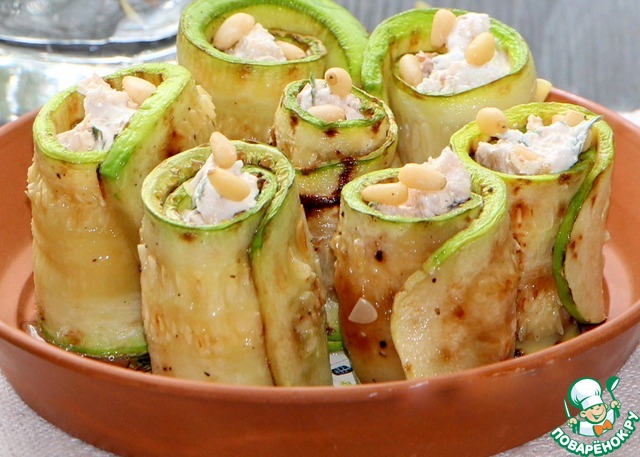 Рецепт «Закуска с курицей "Кабачковые рулончики"»: