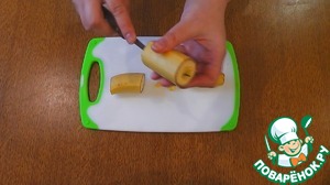 Не очищая кожуры, отрезаем кончики и режем банан на три части.