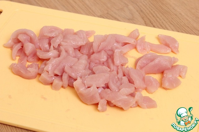 • Куриное филе режу тонкими полосками (кусочками).