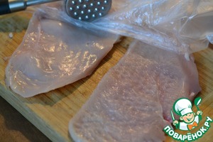 Куриную грудку разрезать пополам. Слегка отбить.