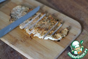 Готовую грудку нарежем на полоски.