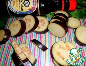 • Баклажаны помыть, вытереть, обрезать края, нарезать кружками 1 см. Затем каждый кружок разрезать на 3 -4 части, чтобы получились брусочки.